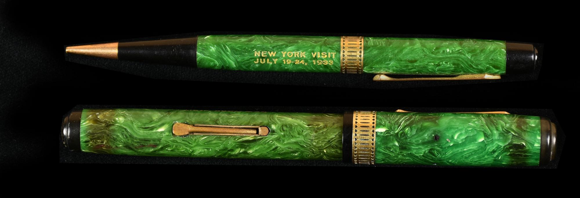 1 penna stilografica, con incisione New York 1933, componenti in oro.