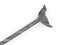Bastone da passeggio in lamina di metallo argentato con impugnatura in forma di volatile; un occhio mancante, cm 87