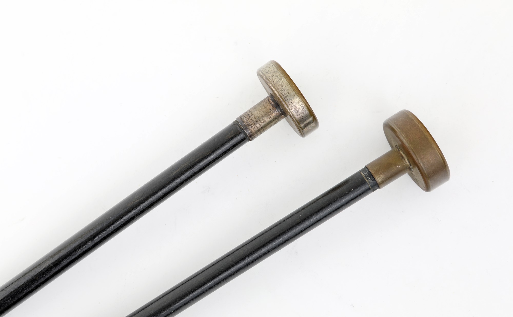 Lotto 13 | Due bastoni da passeggio con impugnatura a disco caratterizzata da una M e da...