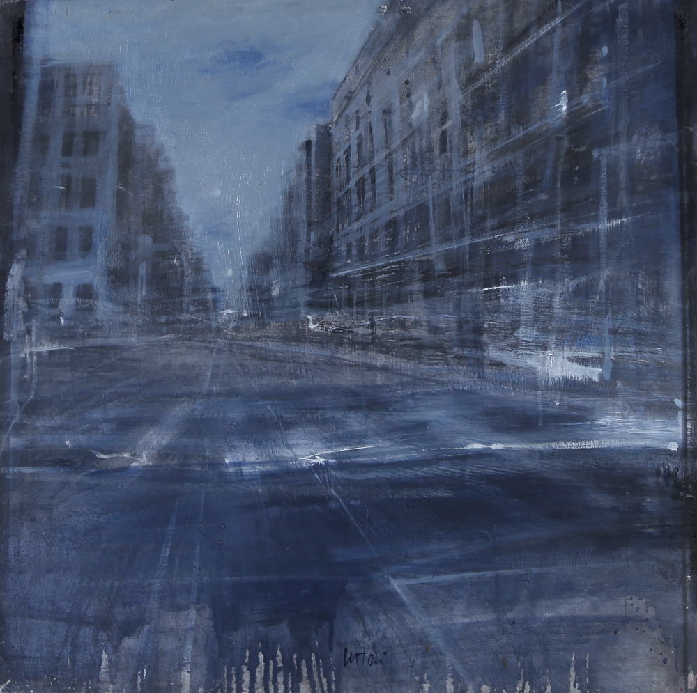 DANIELE CESTARI Ferrara 1983 Mattino, 2000 tecnica mista su tela cm. 60x60, firma in basso al centro, titolo, firma e anno al retro, opera senza cornice.