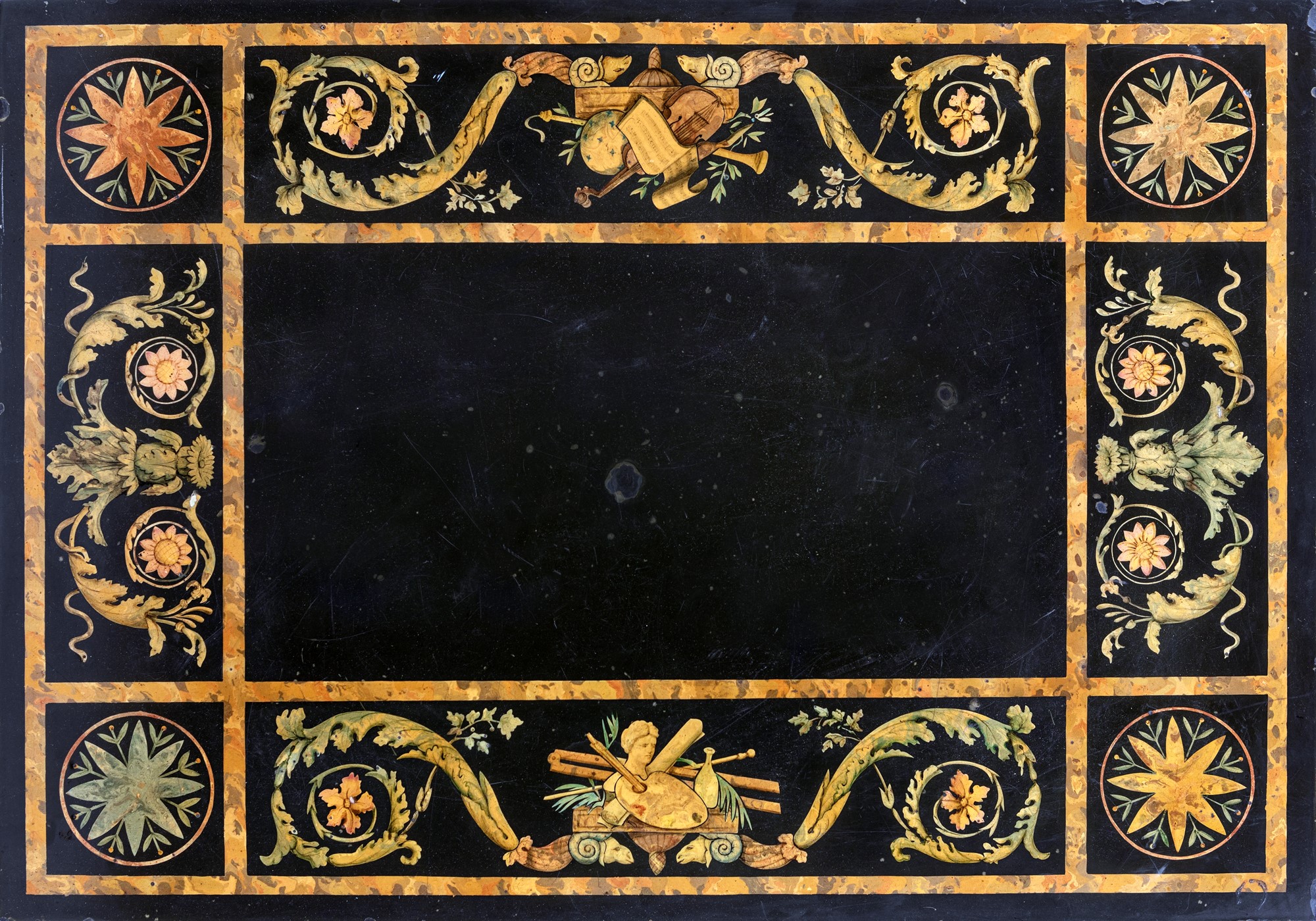 Tavolino basso con piano in scagliola, XIX secolo piano rettangolare nero...