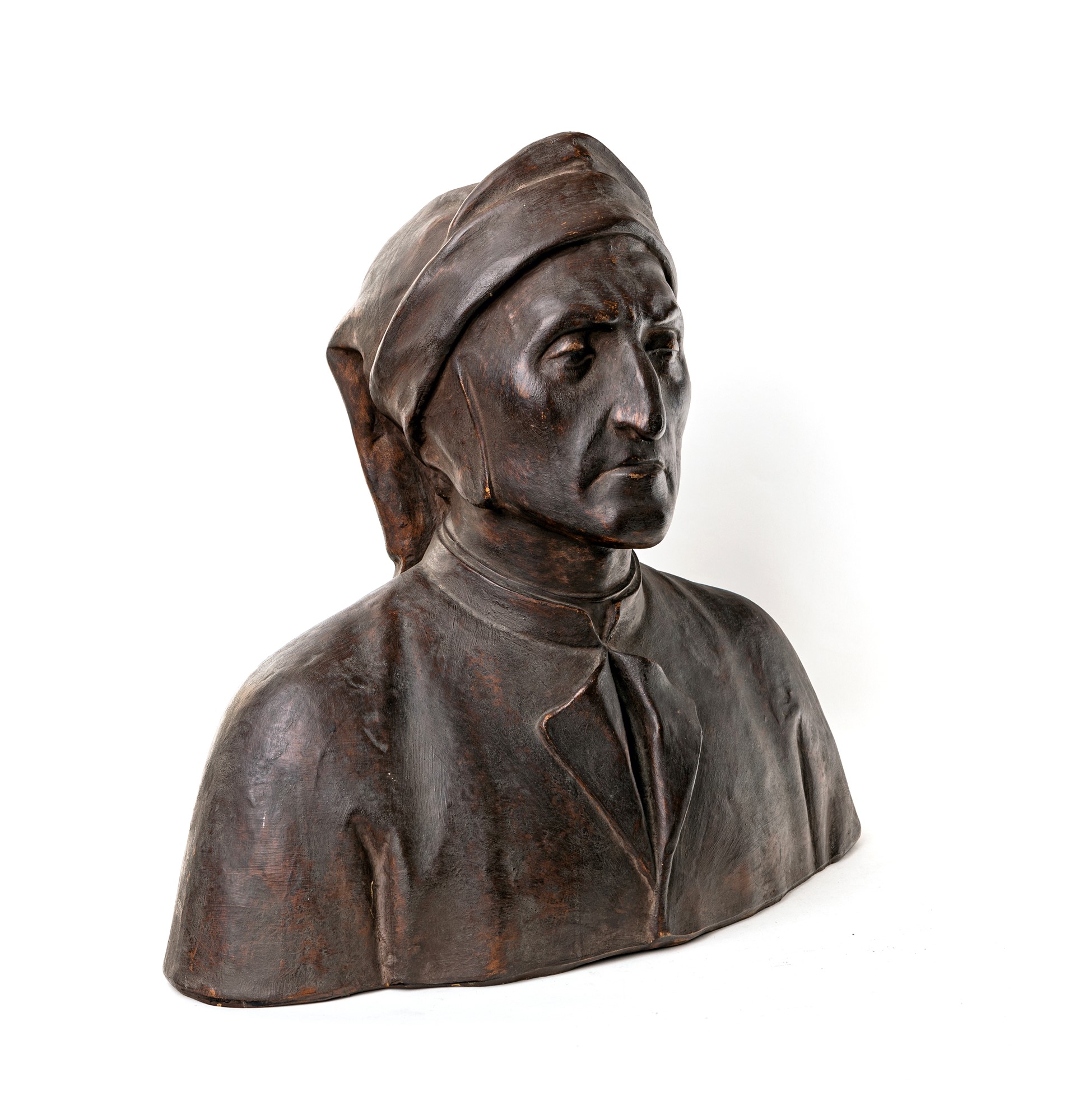 Busto di Dante Alighieri, XIX secolo, terracotta patinata ad imitazione del bronzo, cm 45x50x22