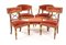 Coppia di poltrone, due sedie ed uno sgabello in mogano con rilievi...