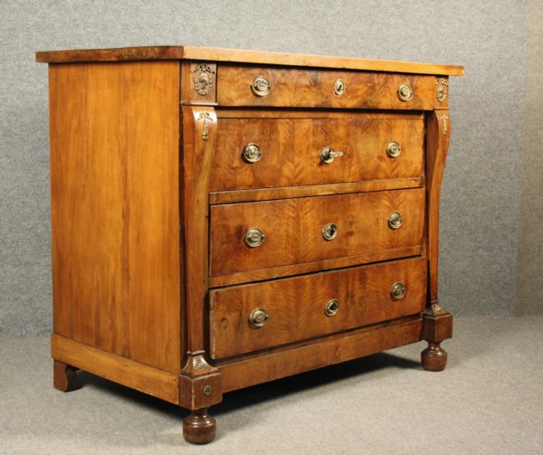 Lotto 456 | Firmato. Comò quattro cassetti in legno di noce. Periodo Impero. Difetti....