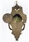 Cartel d'applique in bronzo dorato, Francia, seconda metà XVIII secolo con cassa architettonica sormontata da un vaso da cui discendono ghirlande pendenti; quadrante circolare in smalto bianco a tre fori di carica con fascia oraria a numeri romani ed arabi per i minuti; vertice inferiore a mensola guarnita all'apice da un cespo fogliaceo. Rottura al vetro, cm 74x32x13