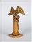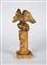 Piccola colonna in marmo giallo, XIX secolo con fusto scanalato, sormontata da una figura scultorea di aquila ritratta ad ali spiegate su base rocciosa da cui si snoda un lungo tralcio fogliaceo, altezza cm 20