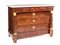 Cassettone in mogano, Francia, XIX secolo con piano in marmo bianco, un cassetto nella fascia, tre in colonna sottostanti delimitati da colonne con manicotti in bronzo dorato, un quinto cassetto compreso nella cornice inferiore, cm 93,5x130x63,5