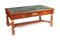 Tavolo basso in mogano, fine del XIX secolo piano rettangolare incassato in marmo verde, un cassetto nella fascia con bocchetta in bronzo dorato, gambe a colonna con manicotti in bronzo, riunite da traversa sagomata. All'interno del cassetto una struttura mobile composta da due parti per l'estensione del piano, cm 49x112x65