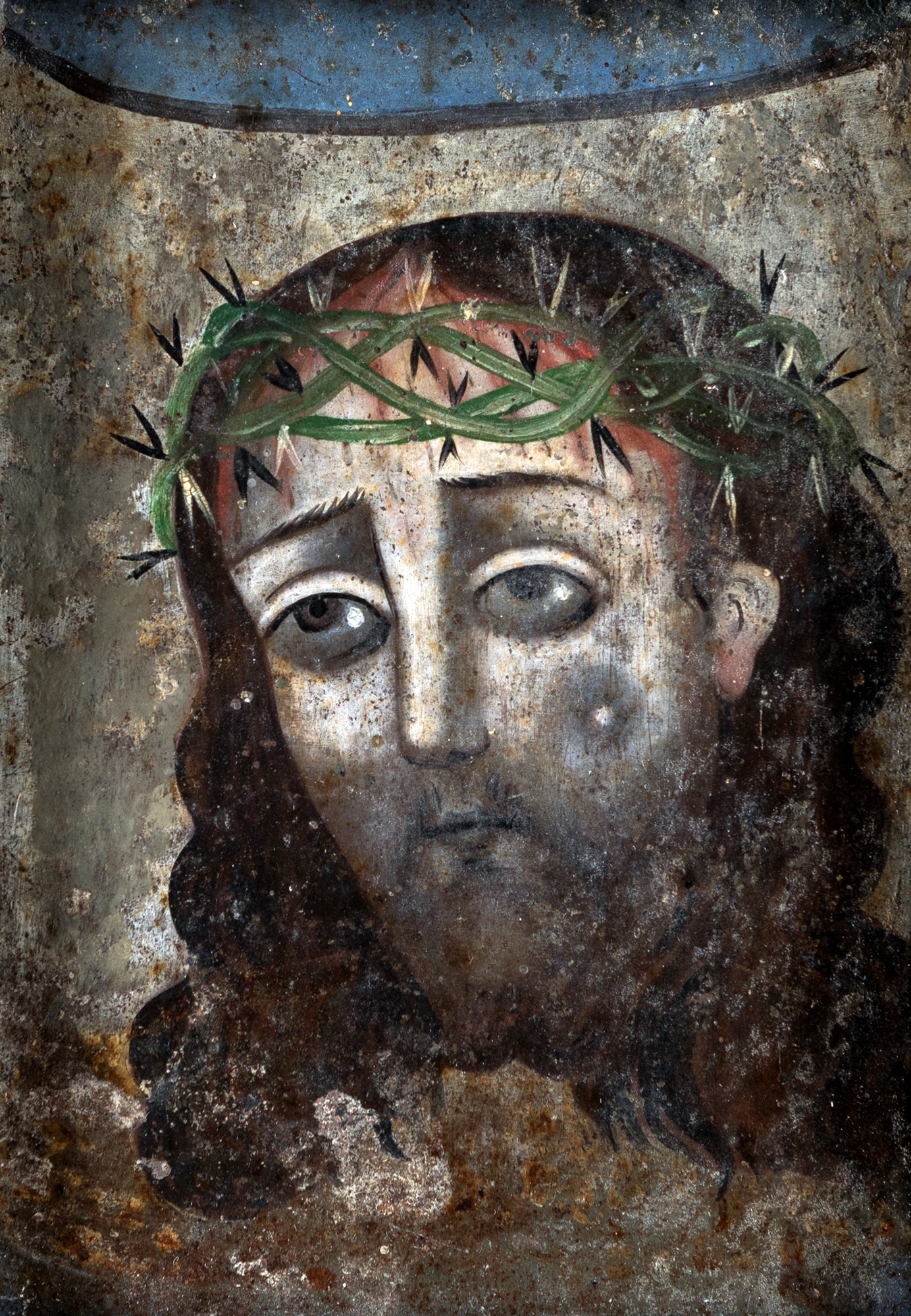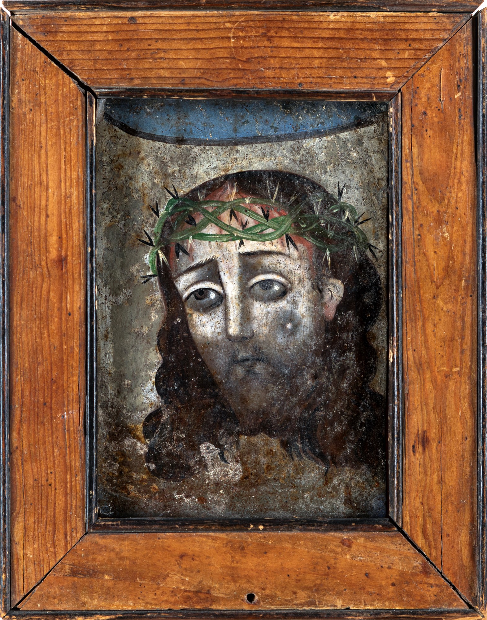 Cristo coronato di spine olio su lastra di metallo, cm 16,5x11 in cornice cm...