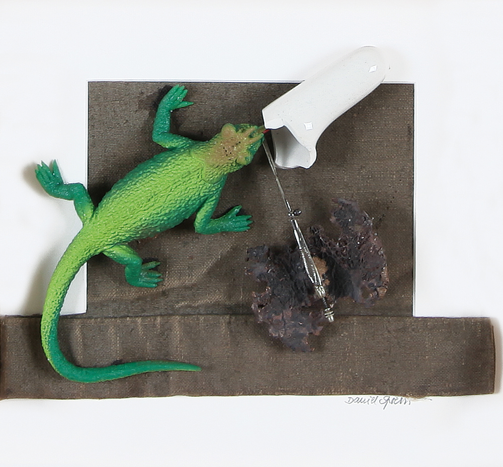 DANIEL SPOERRI Galati 1930 Senza titolo, 2007 assemblaggio di plastica, ceramica, tessuto e metallo su cartone applicato su faesite cm. 34,5x36,5x5, firma in basso a destra, lunga dicitura di pugno dell'artista datata 13.jan.07 al retro, dichiarazione d'autenticità dell'artista su foto.