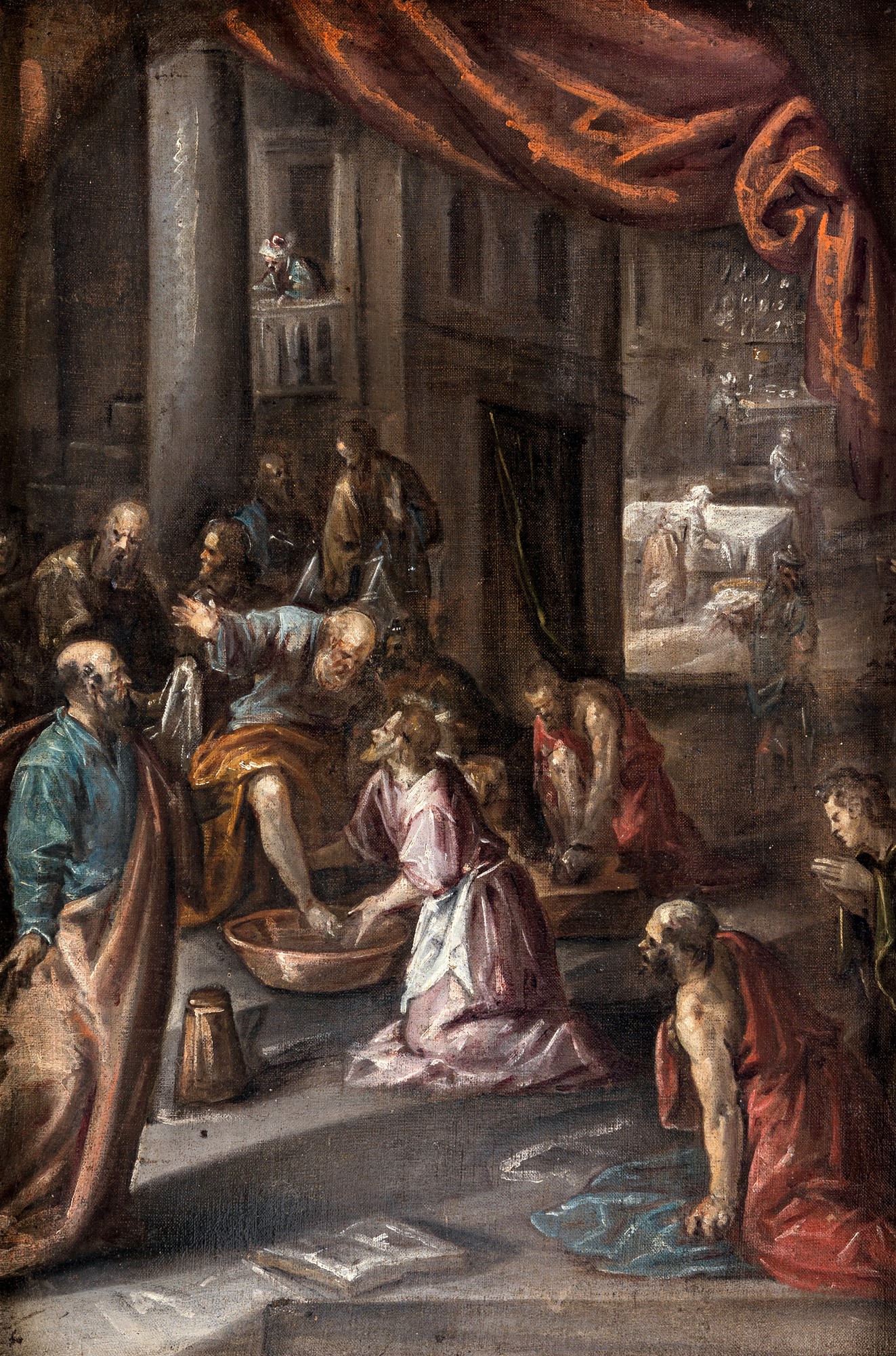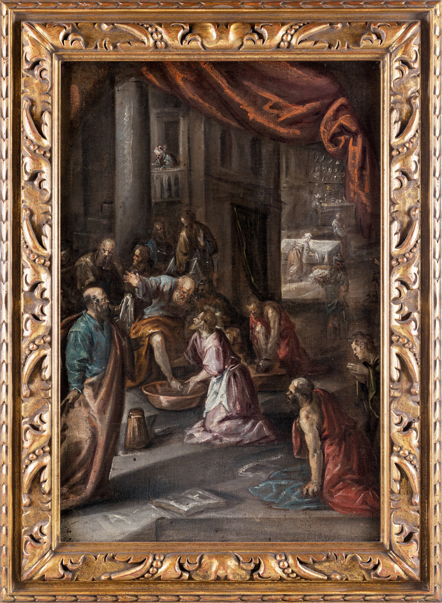 Scuola Veneta del XVII secolo La lavanda dei piedi degli apostoli Olio su...