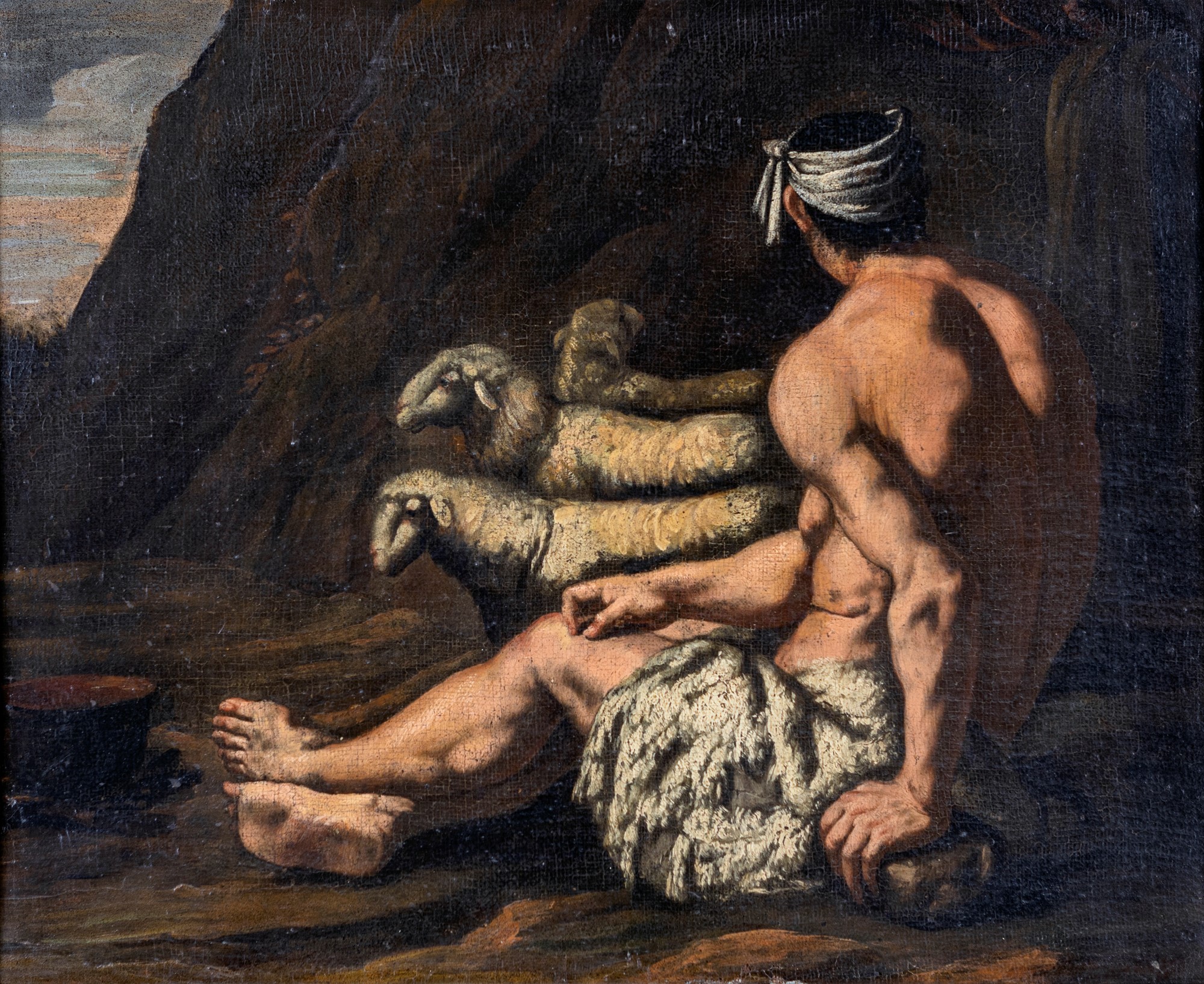Il tono naturalistico della scena, la pennellata e i forti contrasti luministici rimandano a un pittore attivo in ambito riberesco non privo, tuttavia, di un certo gusto classicistico (come si evince dalla posa statuaria del personaggio centrale).