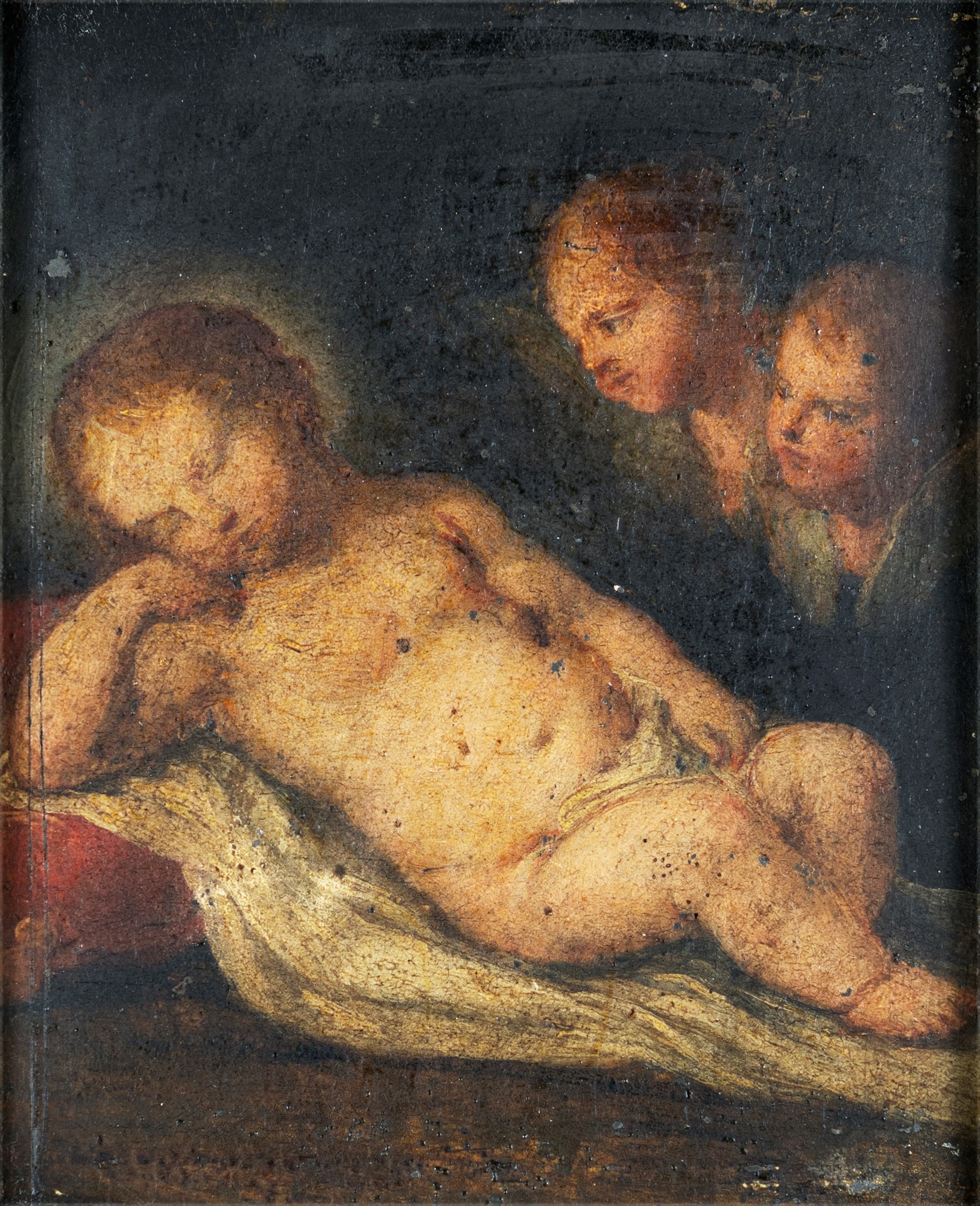 Lotto 260 | Scuola Romana del XVII secolo Bambin Gesù con putti Olio su tela, cm 13x15 -...