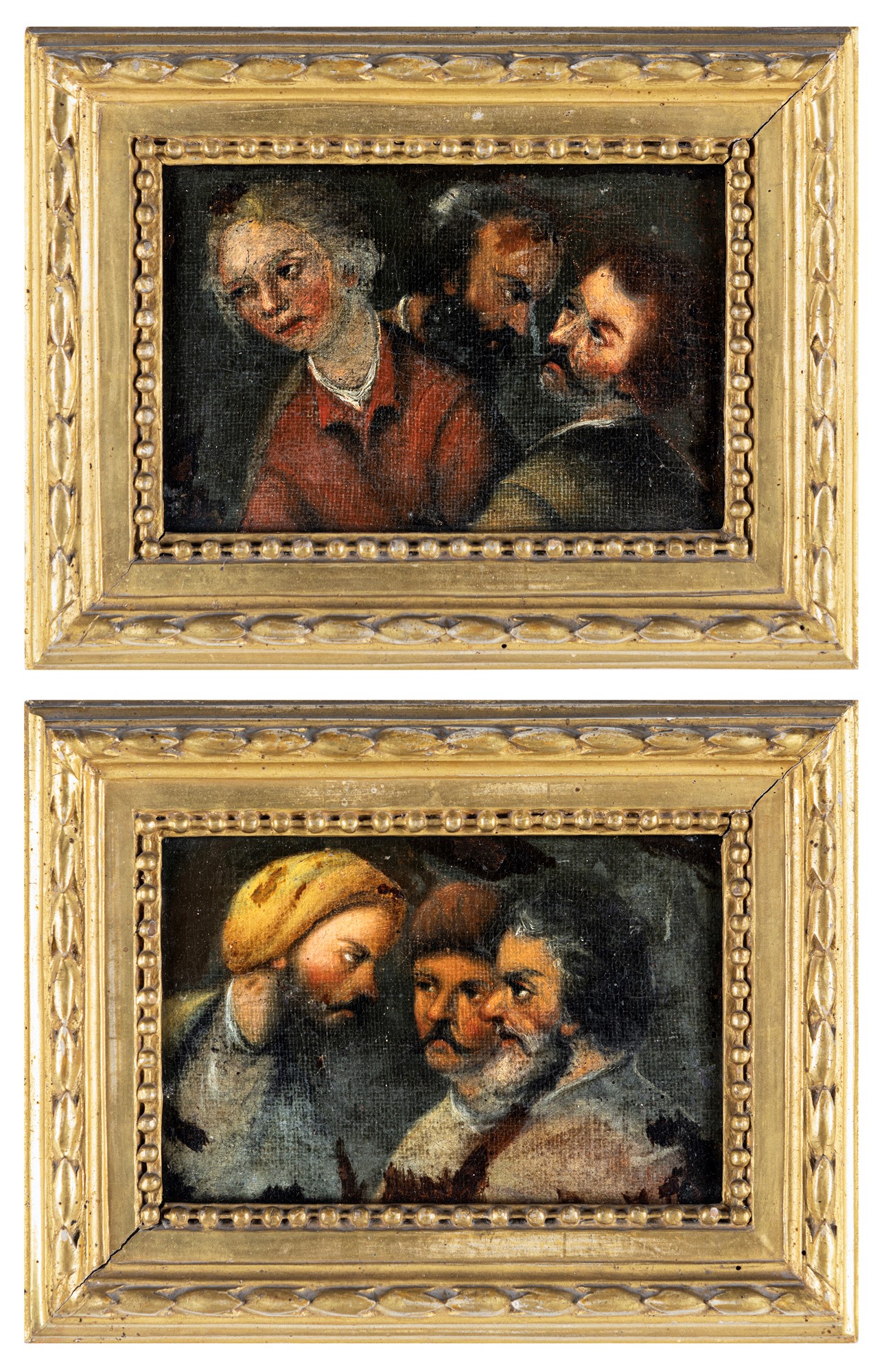 Scuola Lombarda del XVII secolo Coppia di tele con figure a mezzo busto olio...