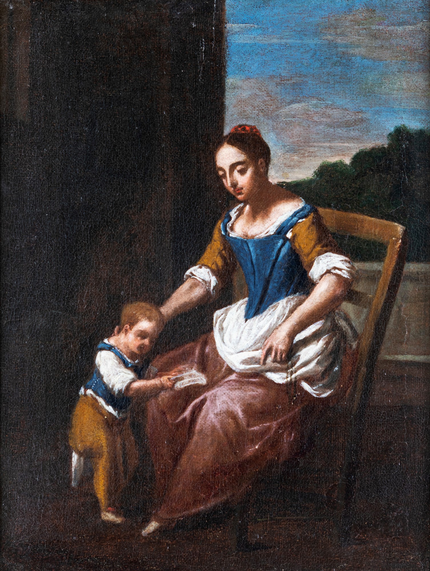 Antonio Amorosi (ambito di) (Comunanza, 1660 - Roma, 1738) Madre con Bimbo...