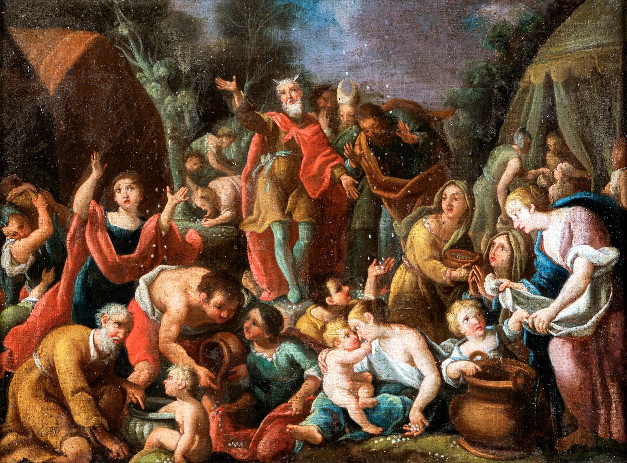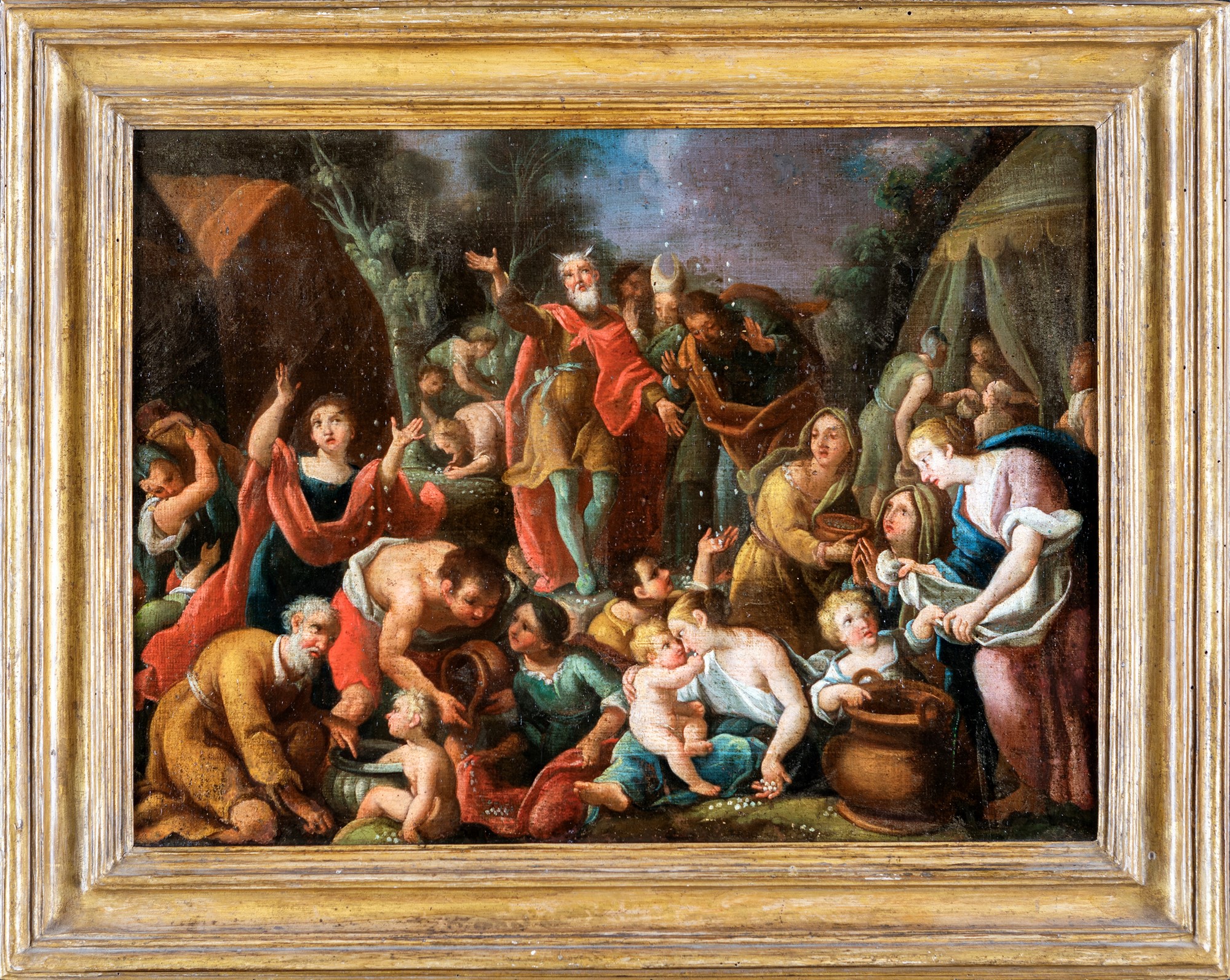 Scuola Romana del XVIII secolo Mosè e la Manna olio su tela, cm 45x62 - in...