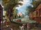 Pittore del XIX secolo Scena di villaggio con uomini e carri Olio su tavola,...