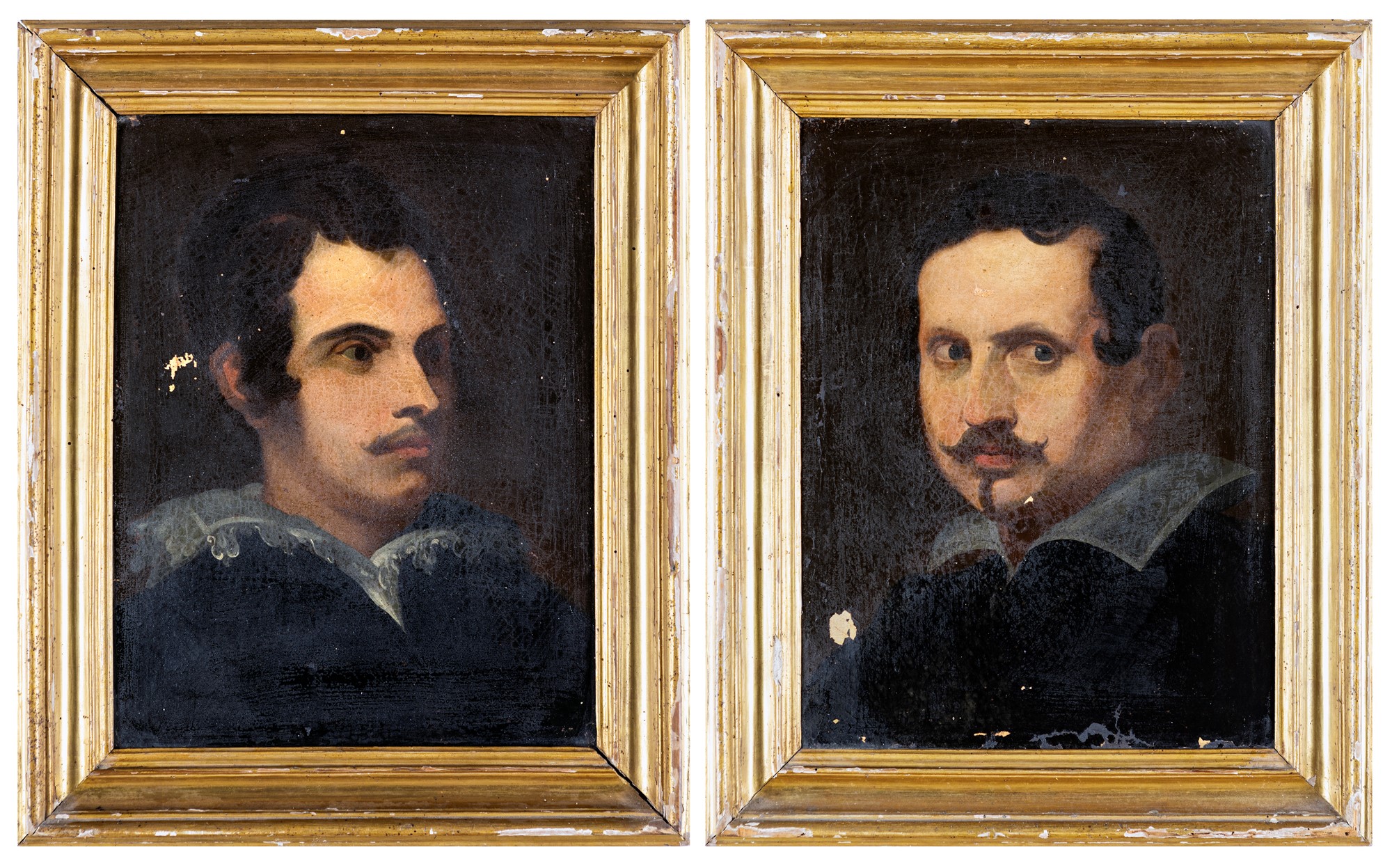 Coppia di dipinti con i ritratti di Antonio Canova e Gian Lorenzo Bernini