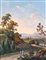 Pittore del XIX secolo Coppi di guazzi con paesaggio di montagna Guazzi su...