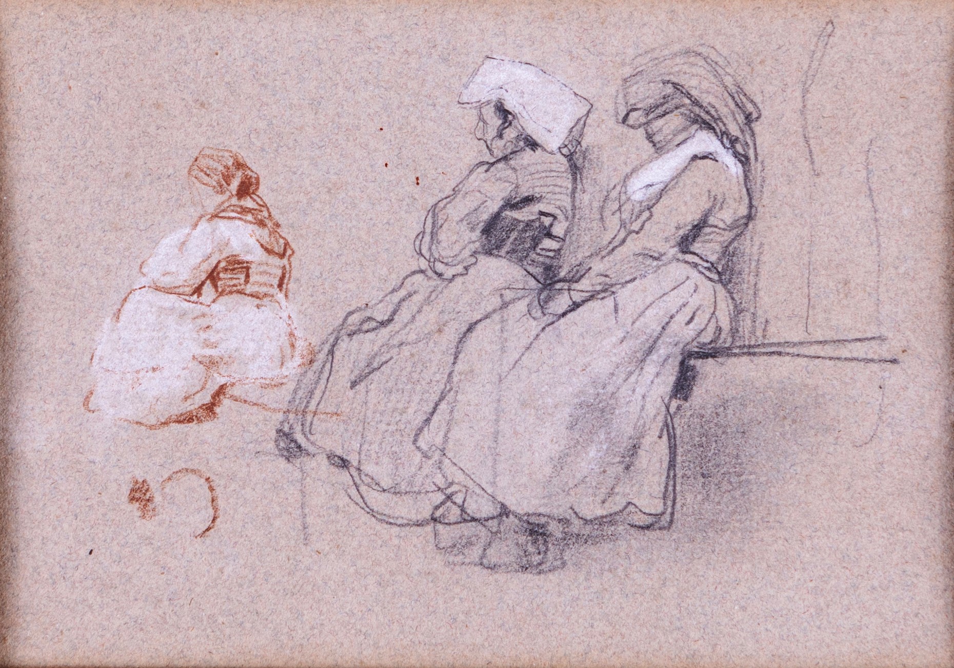 Scuola Italiana del XX secolo, 1920 Due disegni: "Tre donne in costume...