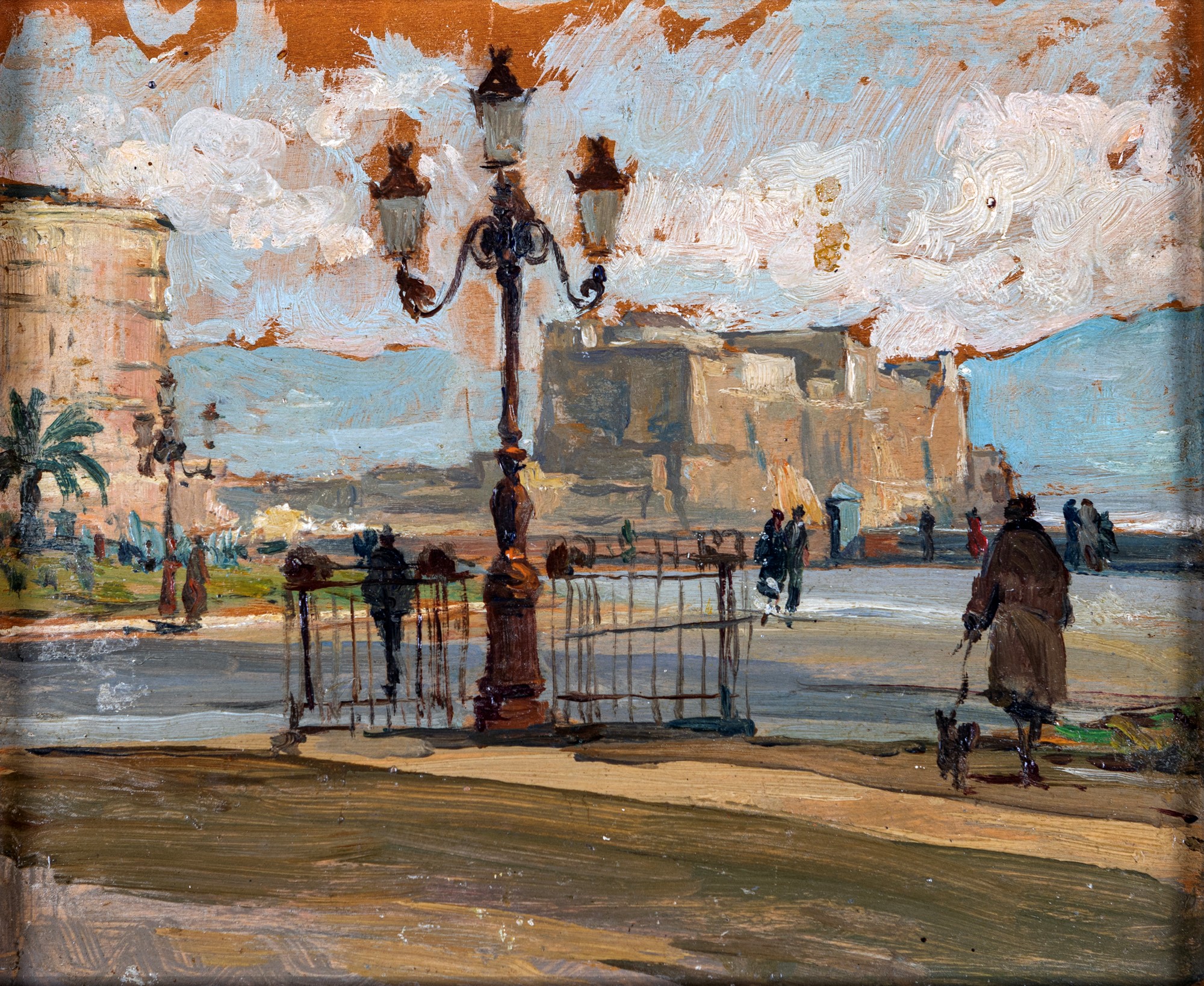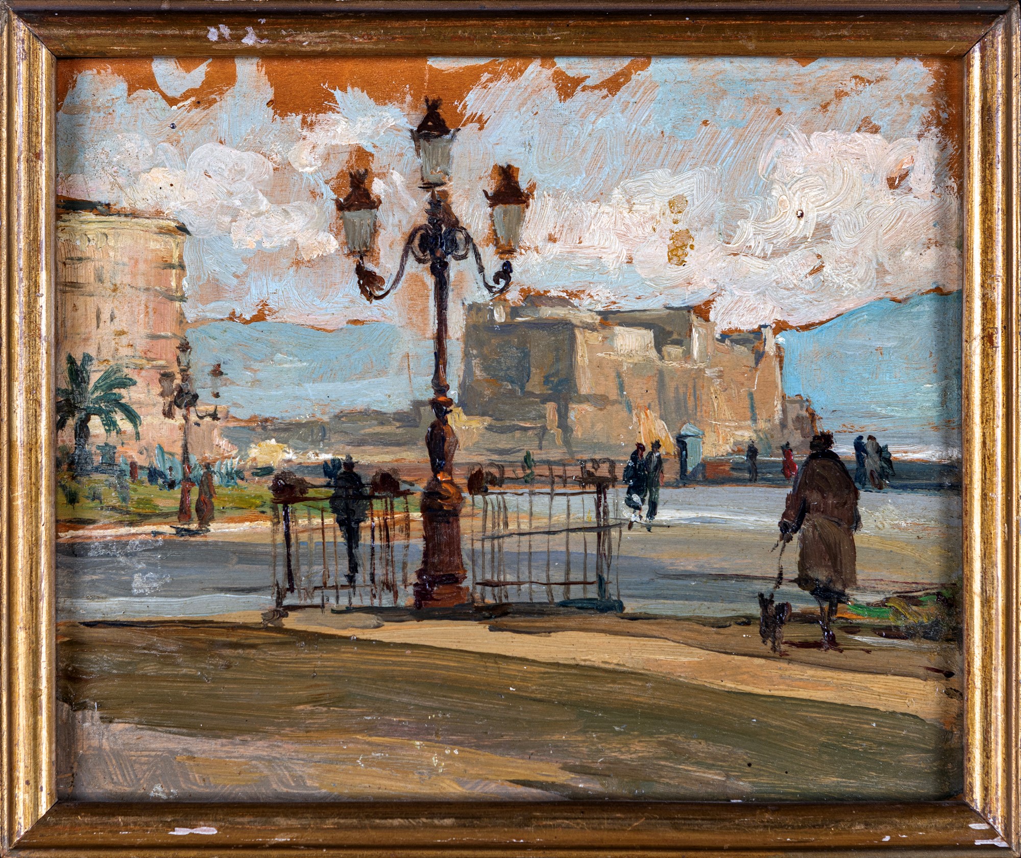 Michele De Simone, 1920 ca. Lungomare a Napoli olio su tavoletta, cm 16 x 20...