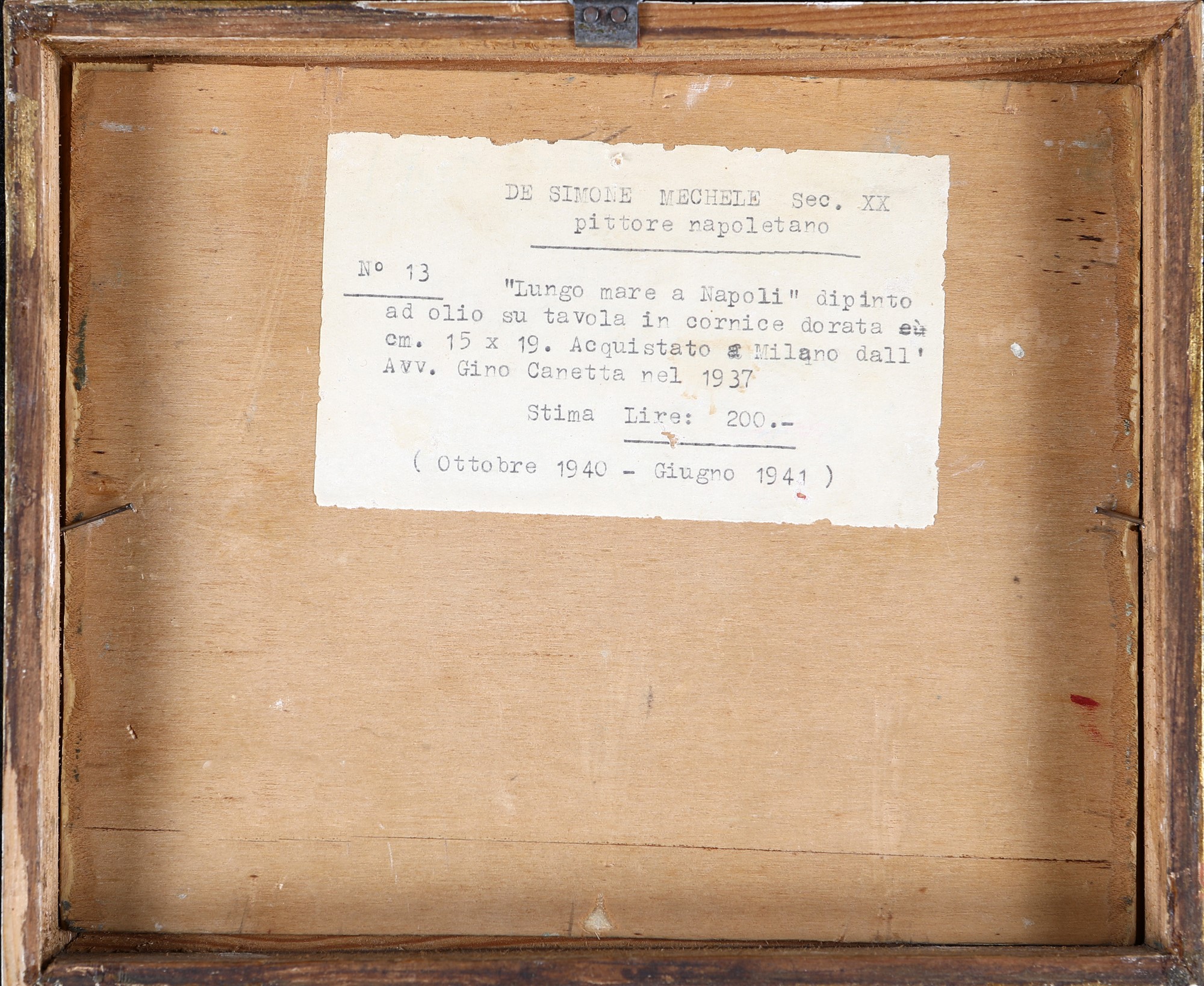 Lotto 365 | Michele De Simone, 1920 ca. Lungomare a Napoli olio su tavoletta, cm 16 x 20...