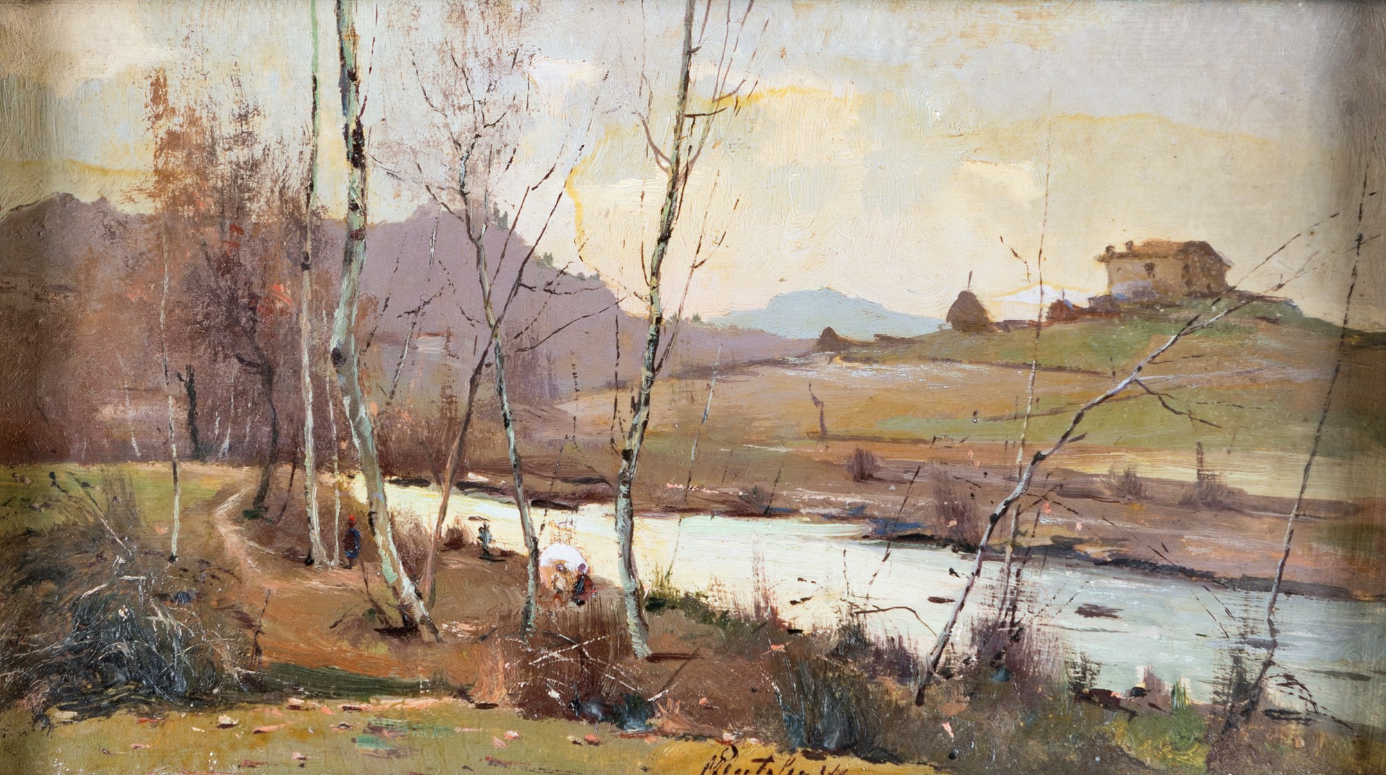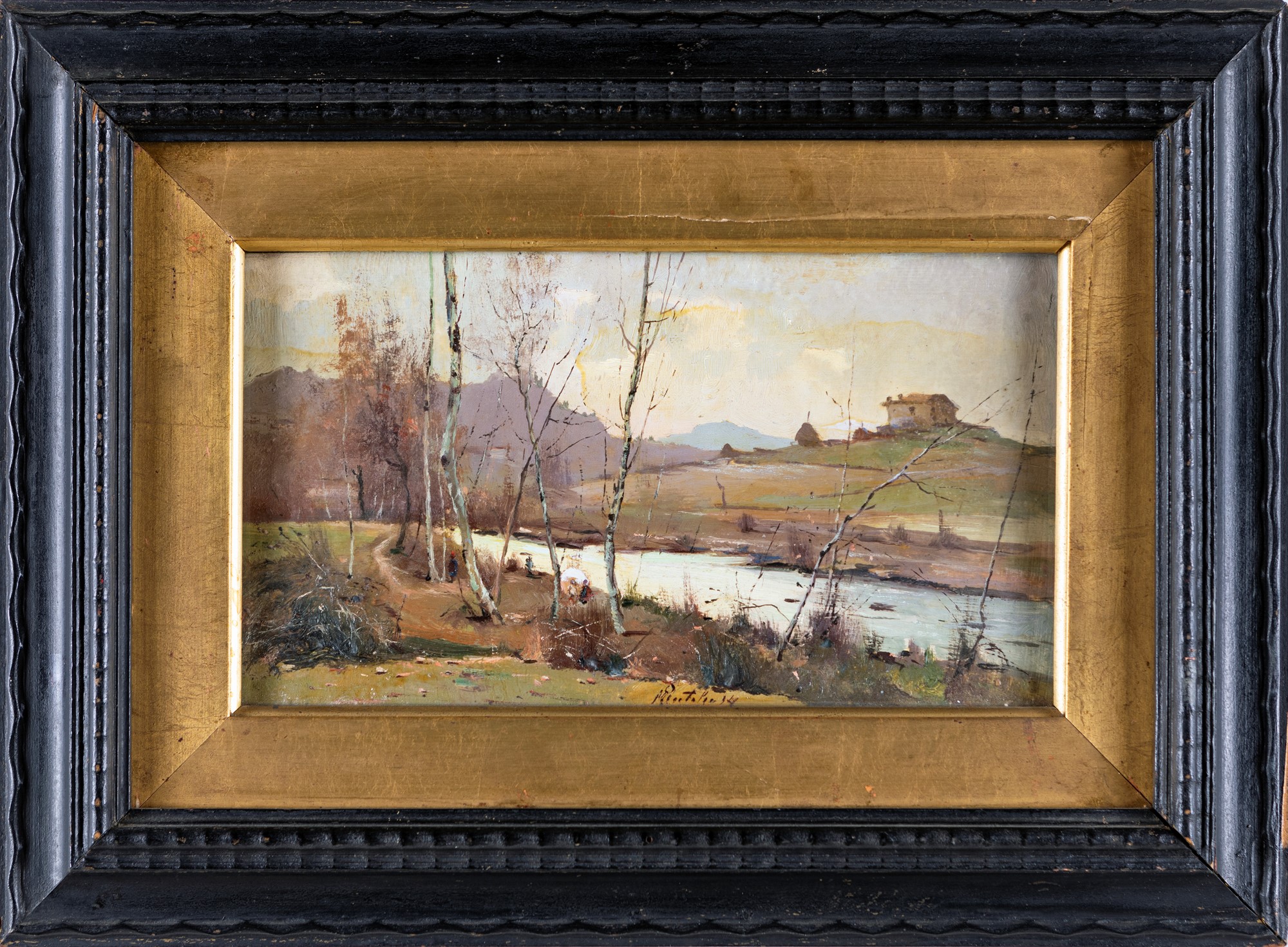 olio su tavoletta, cm 33 x 20 in cornice e passepartout dorato cm 49 x 36
