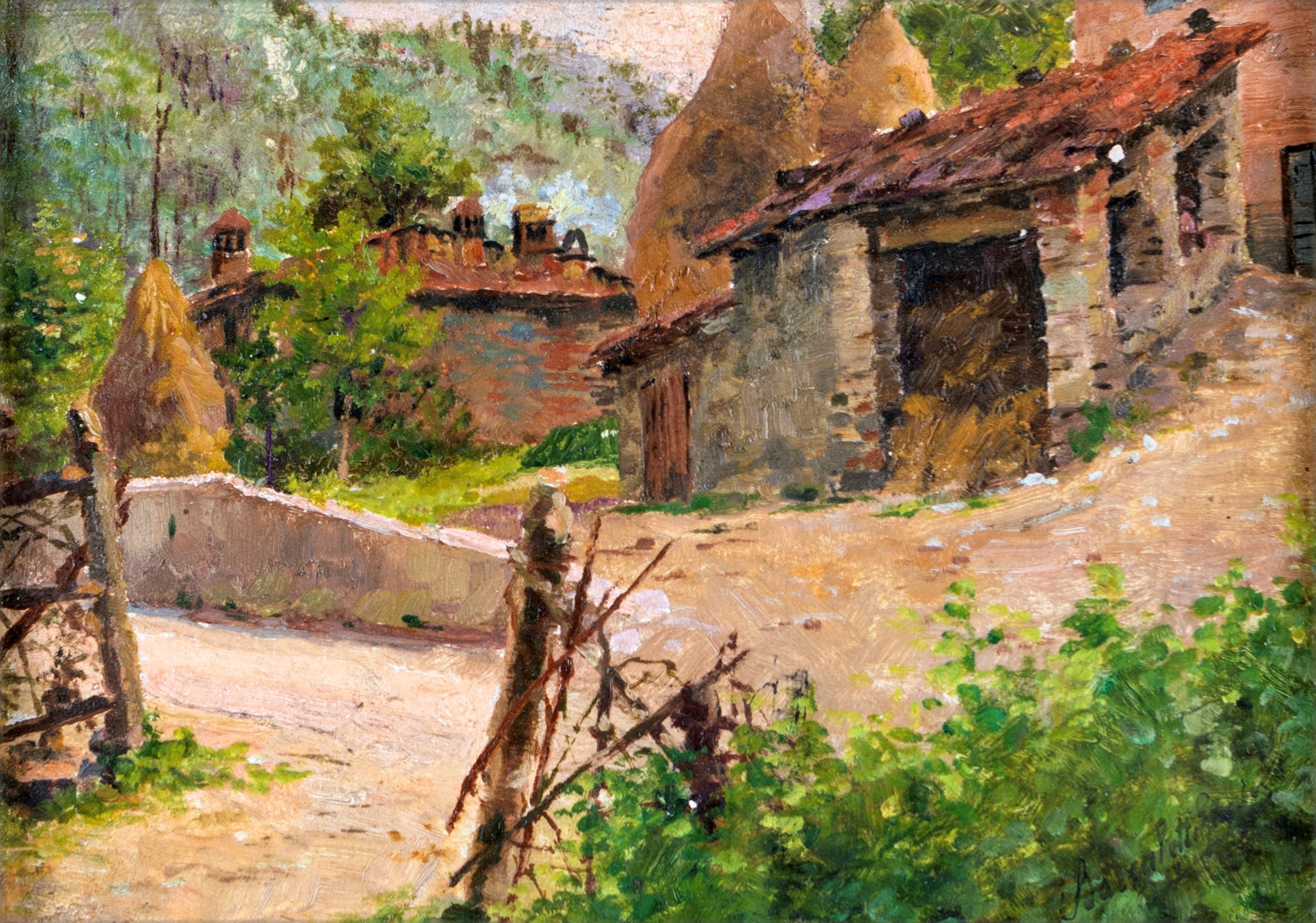 Scuola Italiana del XX secolo Pollaio Olio su tavoletta, cm 23 x 17 in...