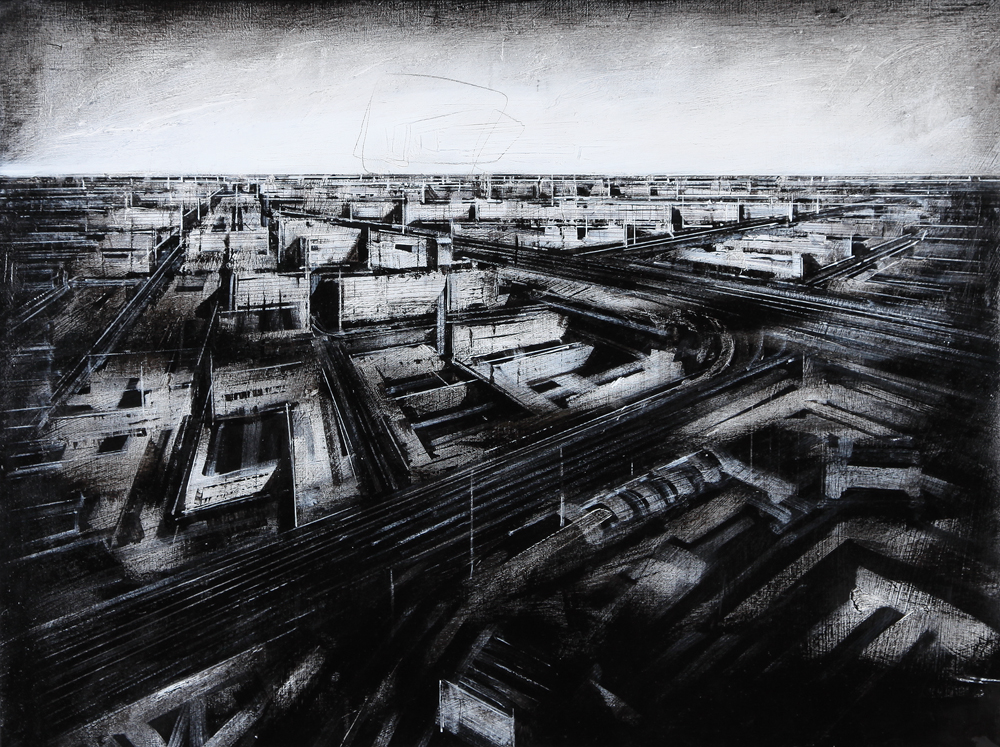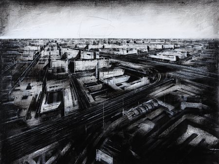 JONATHAN GUAITAMACCHI Londra 1961 View, 2002 olio su carta applicata su tela cm. 60x80, firma, titolo e anno al retro, dichiarazione d'autenticità dell'artista su foto.