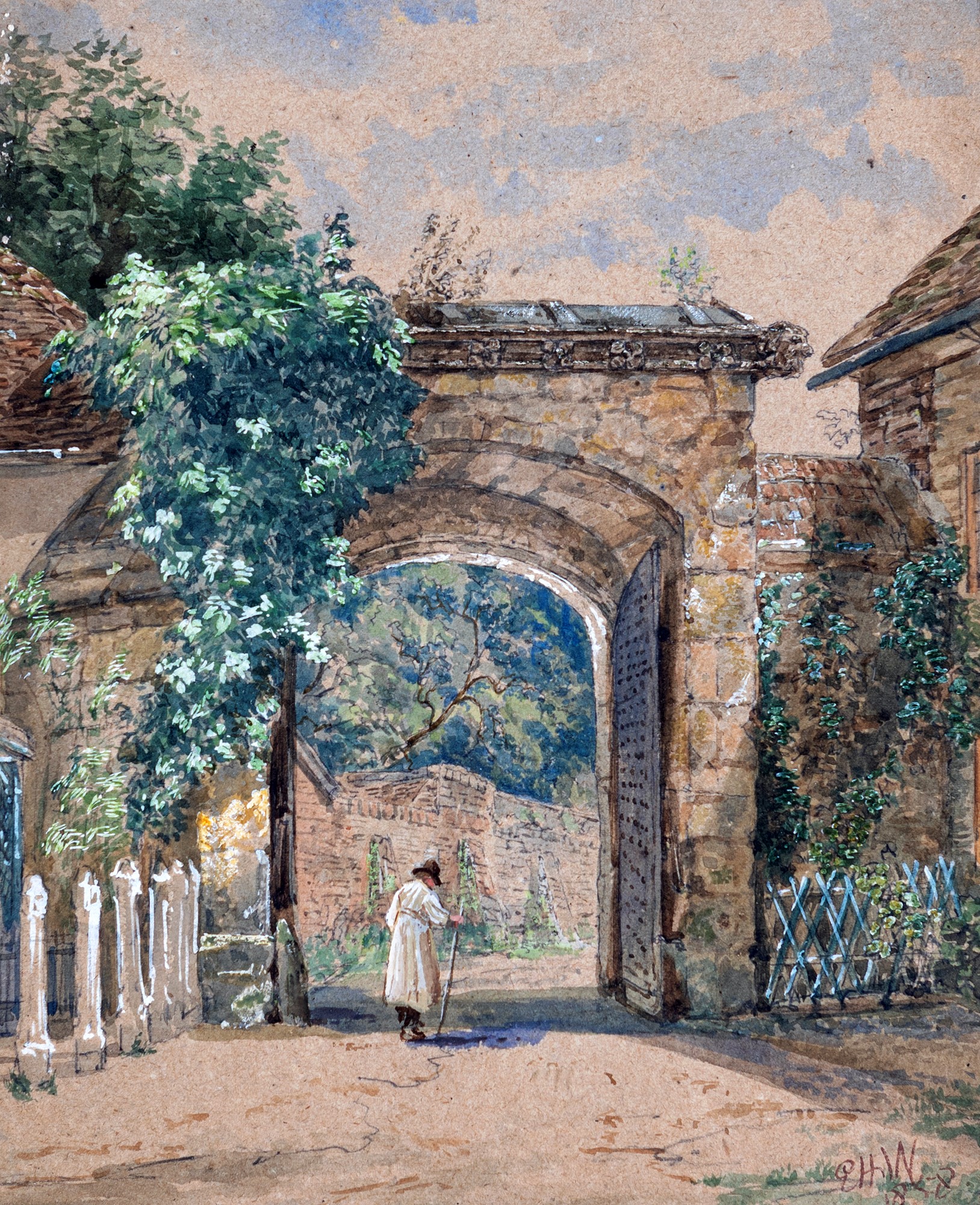 Pittore del XIX secolo, 1858 Paesaggio acquerello su carta, cm 28 x 23 in...