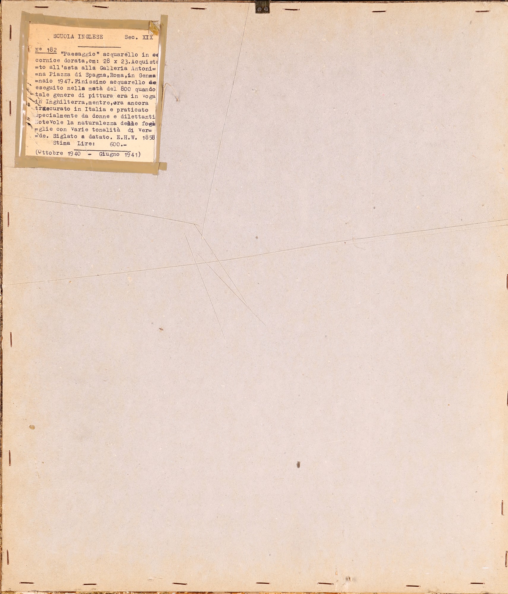 acquerello su carta, cm 28 x 23 in antico passepartout e cornice dorata cm 44 x 39