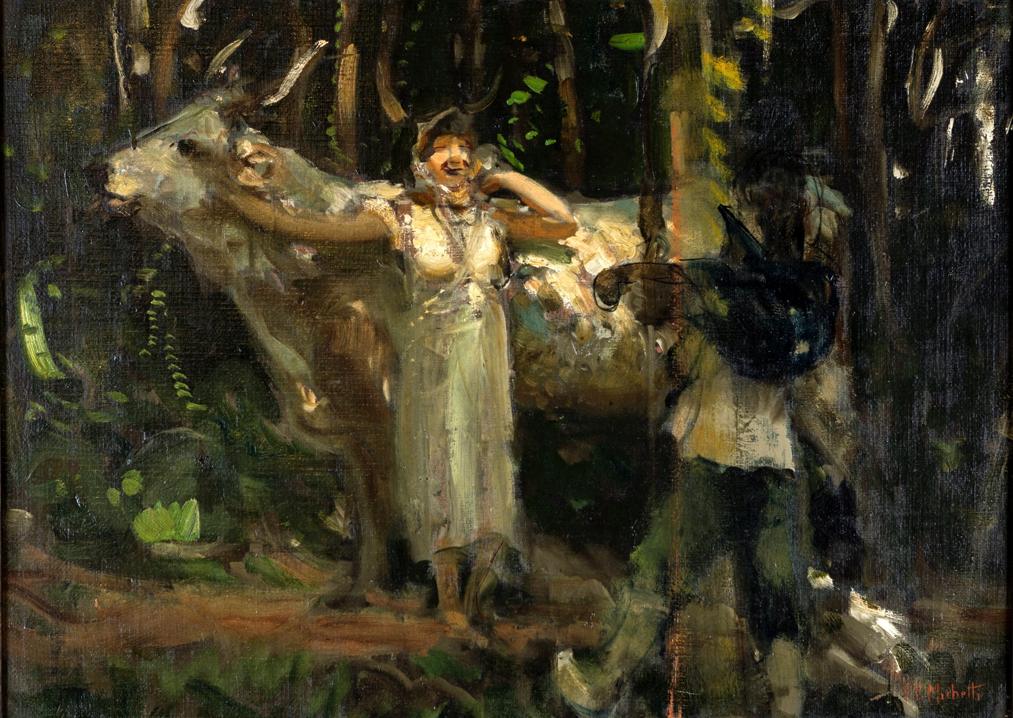 Firmato in basso a destra "F.P. Michetti". Al verso timbro sul telaio "Galleria Schneider - Roma". Opera archiviata nel Catalogo generale Michetti a cura dell'Archivio dell'Ottocento Romano con il numero O/100323/001