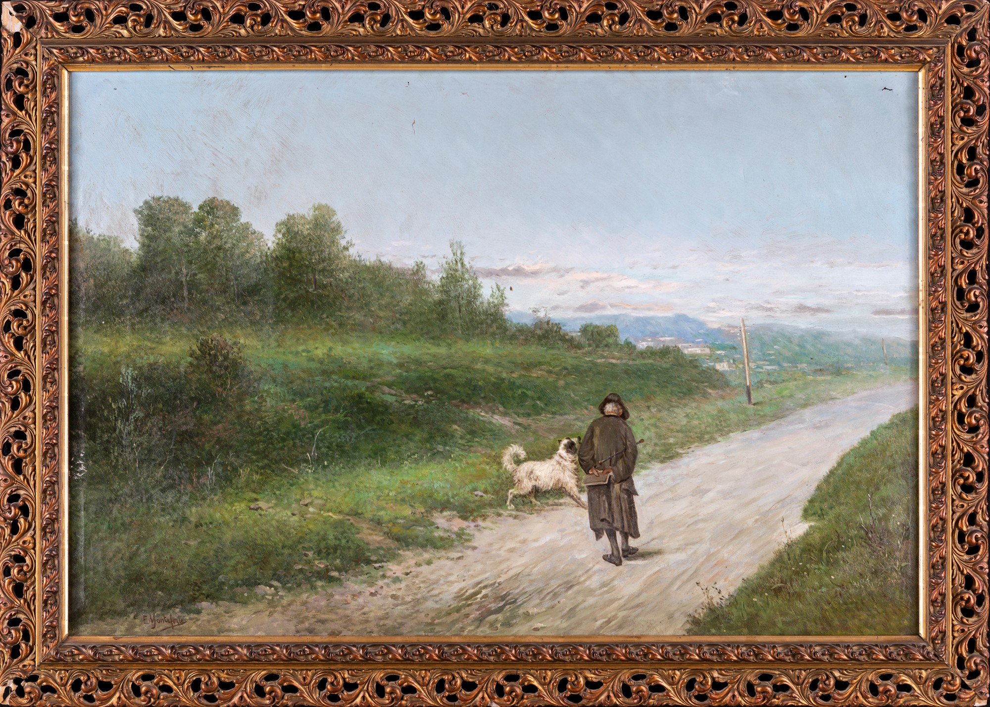 Eduardo Monteforte (Polla, 1849 - Napoli, 1933) Strada di campagna olio su...