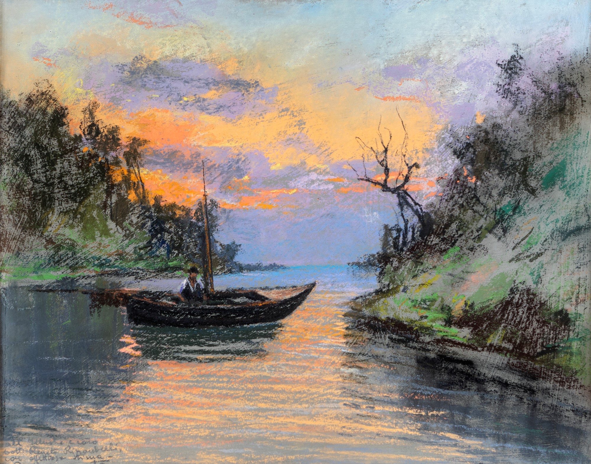Antonio Cannata (Polistena (RC), 1895 - Roma, 1960) Veduta sul lago al...