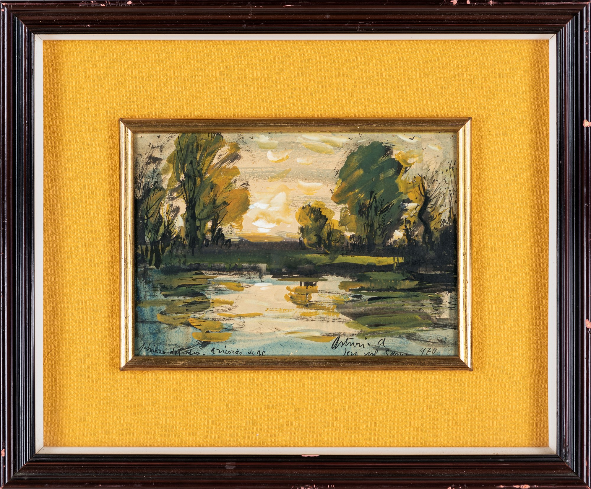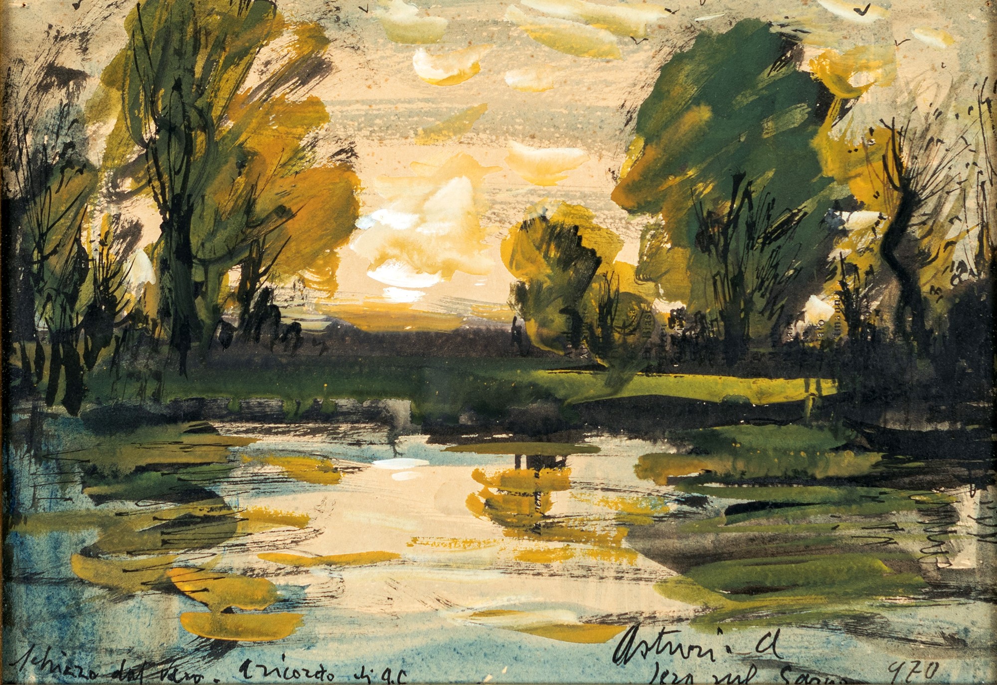 Firmato in basso a destra con dedica "Asturi A. / Sera sul Sarno 970". In basso a sinistra: "Schizzo dal vero. A ricordo di A. C"