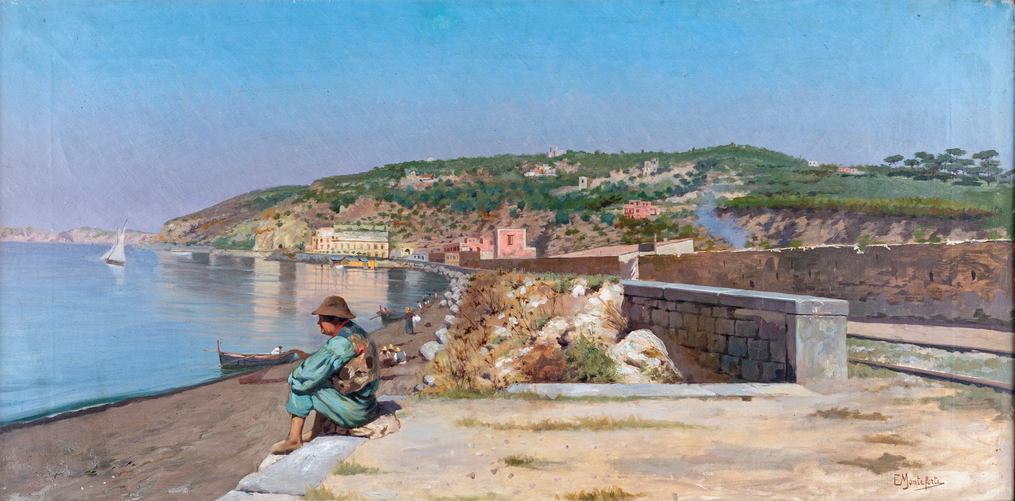 Firmato in basso a destra: "E. Monteforte". Al verso, sulla tela, antico numero di inventario o di esposizione