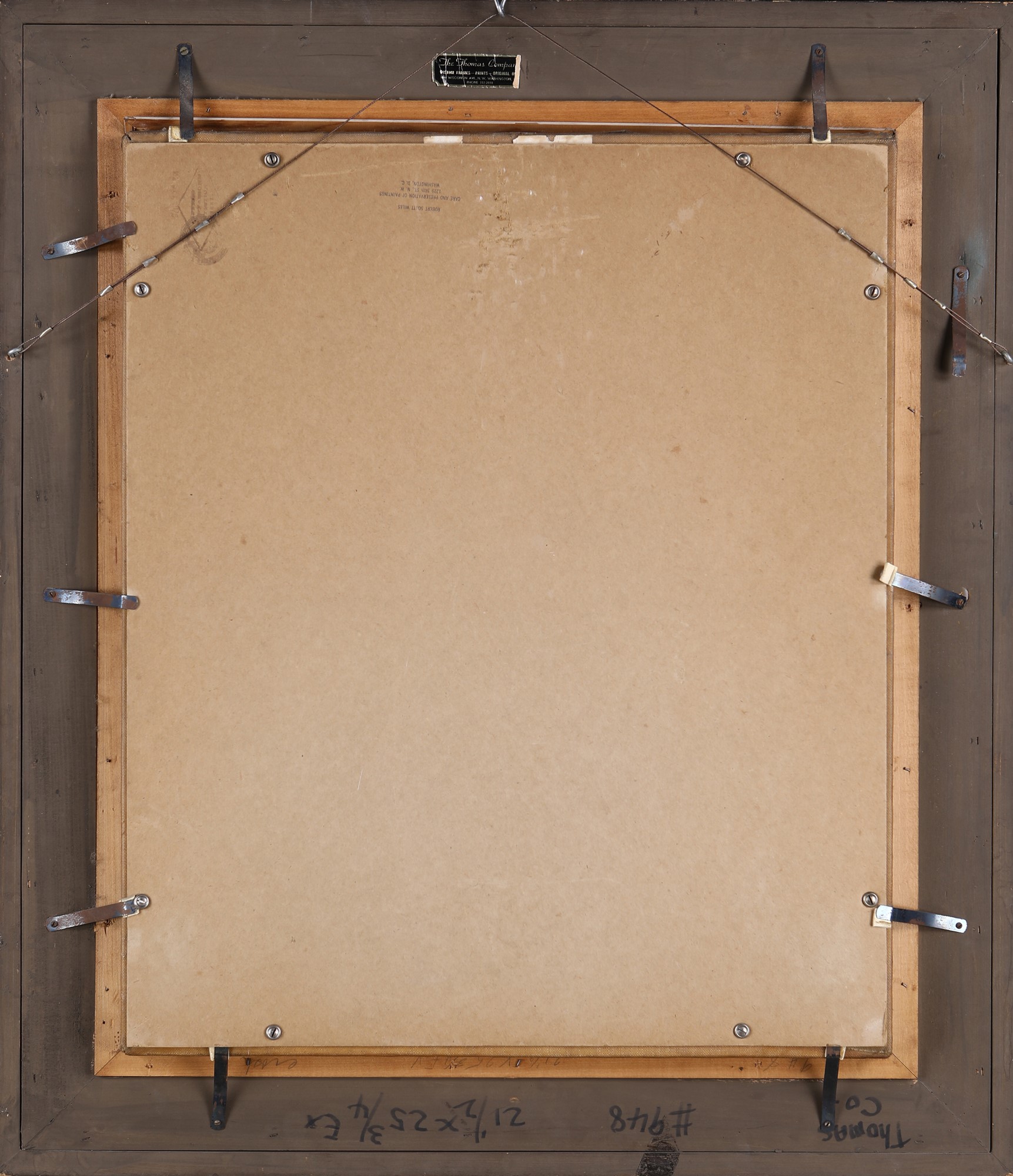 Opera non firmata. Sulla cornice, antica etichetta di attribuzione a Eugène Boudin (Honfleur, 12 luglio 1824 – Deauville, 8 agosto 1898). Al verso il quadro si presenta chiuso, con il sistema tradizionalmente in uso negli Stati Uniti, e reca etichetta antica del corniciaio, timbri diplomatici, e infine il timbro di Robert Scott Wiles, gallerista e curatore della Corcoran Gallery of Art di Washington dal 1970 al 1983.