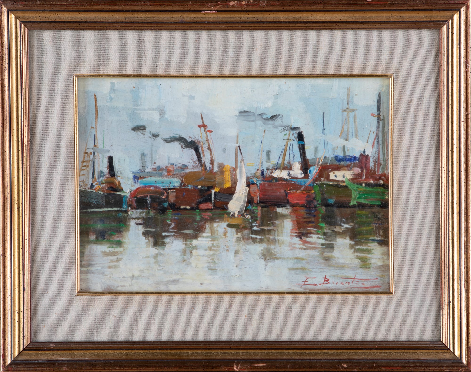 Lotto 441 | Ezelino Briante (Napoli, 1901 - Roma, 1971) Barche nel porto Olio su tavola,...