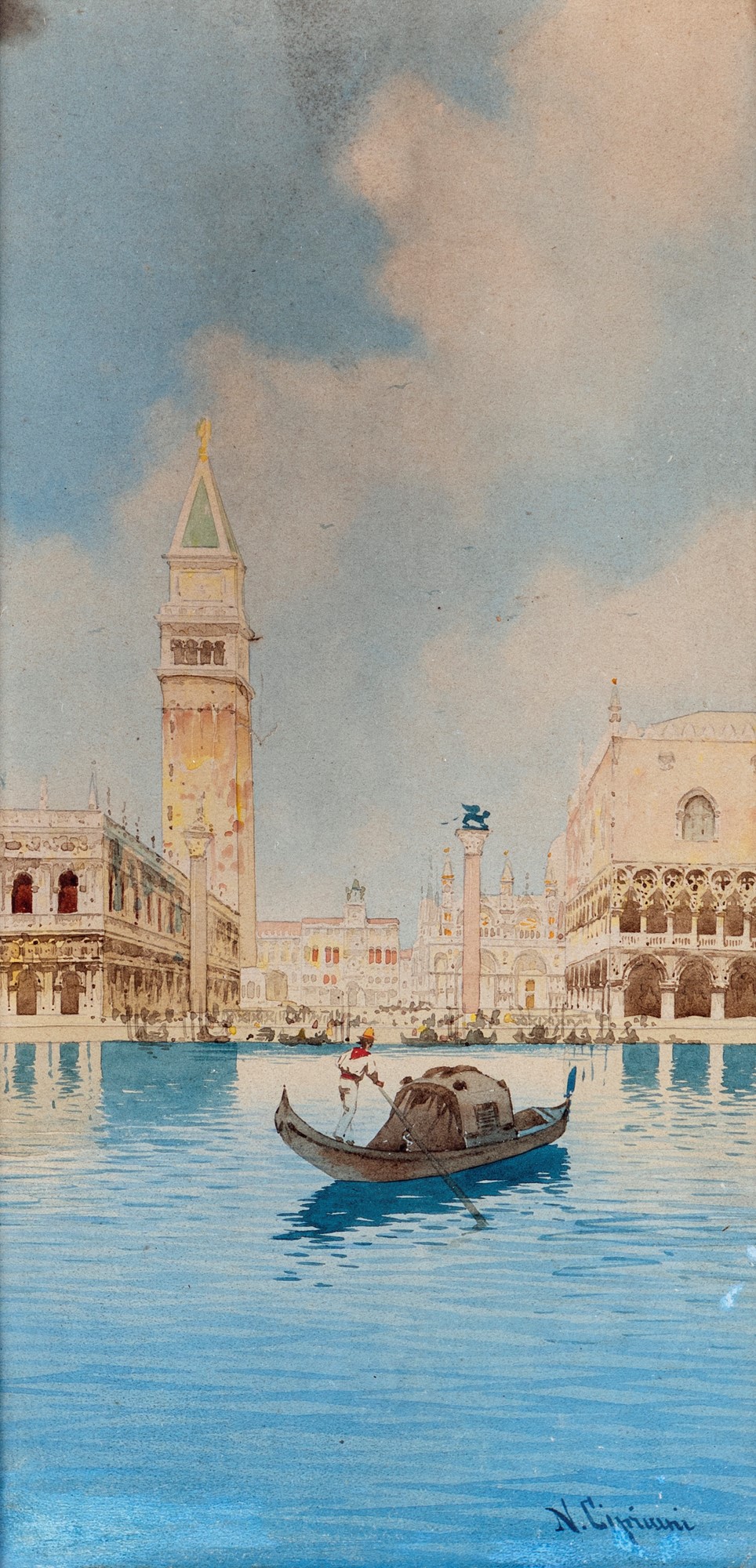 Nazareno Cipriani (Roma, 1843 - Roma, 1925) Vedute di Venezia Acquarello su...