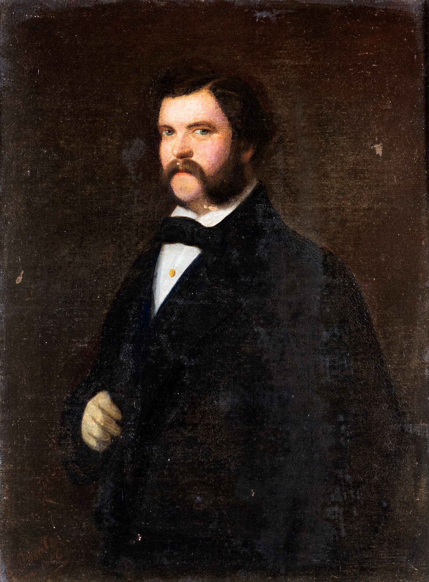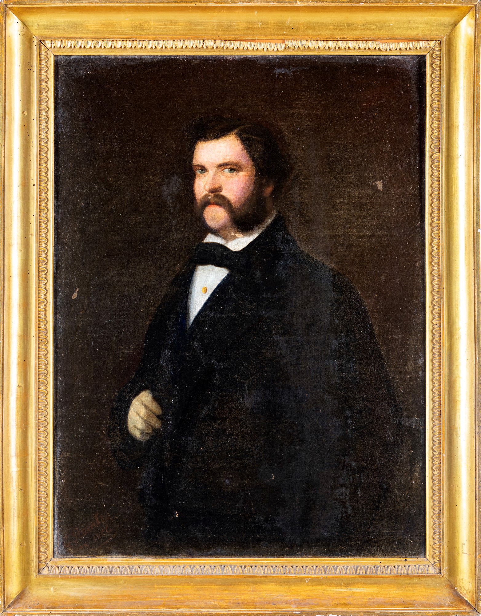 Pittore del XIX secolo Ritratto di gentiluomo con baffi olio su tela, cm...