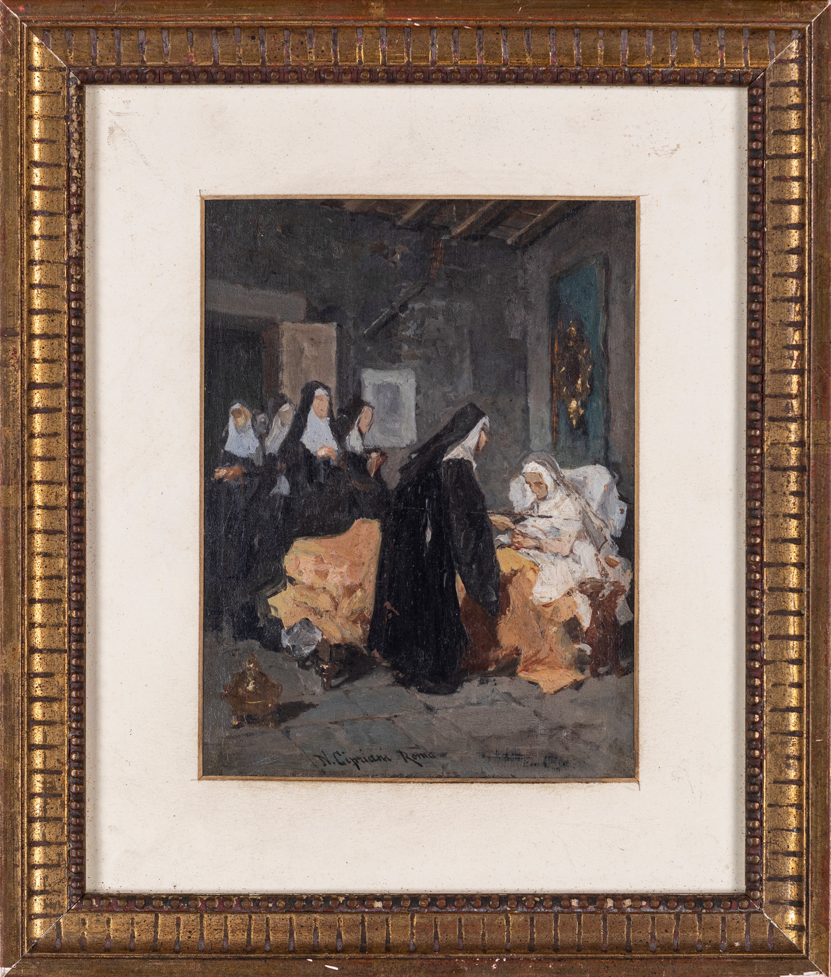 Nazareno Cipriani (Roma, 1843 - Roma, 1925) Suore al capezzale olio su...