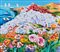 ATHOS FACCINCANI Peschiera (Vr) 29/01/1951 Racconto mediterraneo, 2008 olio su tela cm. 70x80, firma in basso a destra, titolo e firma al retro, dichiarazione d'autenticità dell'artista su foto.