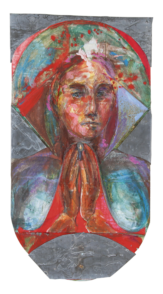 BRUNO CECCOBELLI Montecastello Vibio (Pg) 02/09/1952  Uno di noi è l'intruso, 1996 piombo e tecnica mista su cartone cm. 57,5x31, firma, anno e titolo al retro, dichiarazione d'autenticità dell'artista con dedica ad personam su foto, opera registrata presso l'Archivio Ceccobelli come da dichiarazione su foto, pubblicato sul catalogo della mostra Bruno Ceccobelli "Der geist Aus Der Materie" tenutasi nel 1996 presso Leonhardi-Museum, pagina 31.