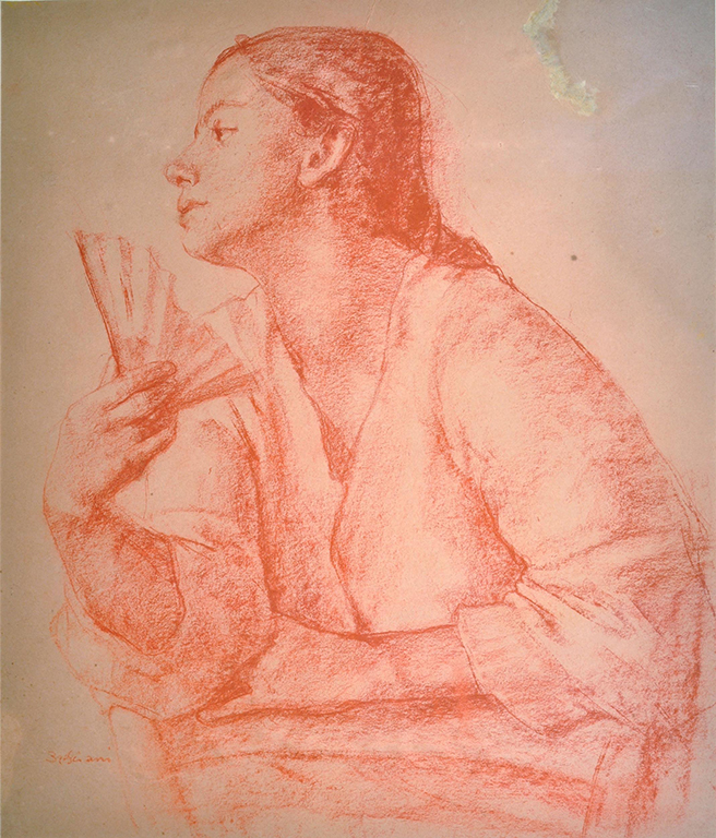 Bresciani Antonio (Napoli 1902 - 1998) Figura femminile sanguigna su carta, cm 51x43 firmato in basso a sinistra: Bresciani