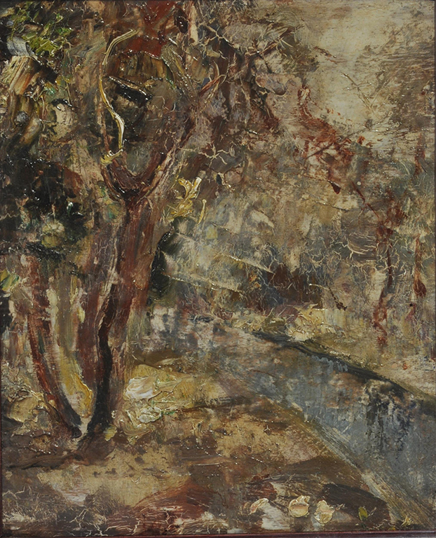Pratella Attilio (Lugo di Romagna, RA 1856 - Napoli 1949) Viale alberato olio su tavola, cm 19x16 non firmato