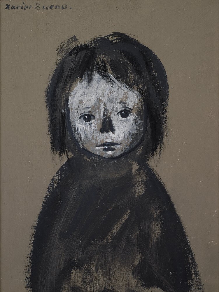 XAVIER BUENO Vera De Bidasoa (Spagna) 1915 - Fiesole (Fi) 17/07/1979 Bambina, 1962 ca olio su cartone cm. 40x30, firma in alto a sinistra, etichetta della Galleria d'Arte La Sfera (MO) al retro, dichiarazione d'autenticità del figlio Raffaele su due foto.