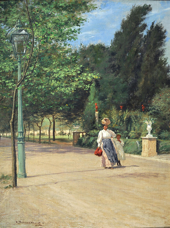 Brancaccio Carlo (Napoli 1861-1920) Paesaggio con figura olio su cartone, cm 40,5x30,5 firmato in basso a sinistra: C. Brancaccio Provenienza: coll. privata, Bologna Esposizioni: Napoli 2022