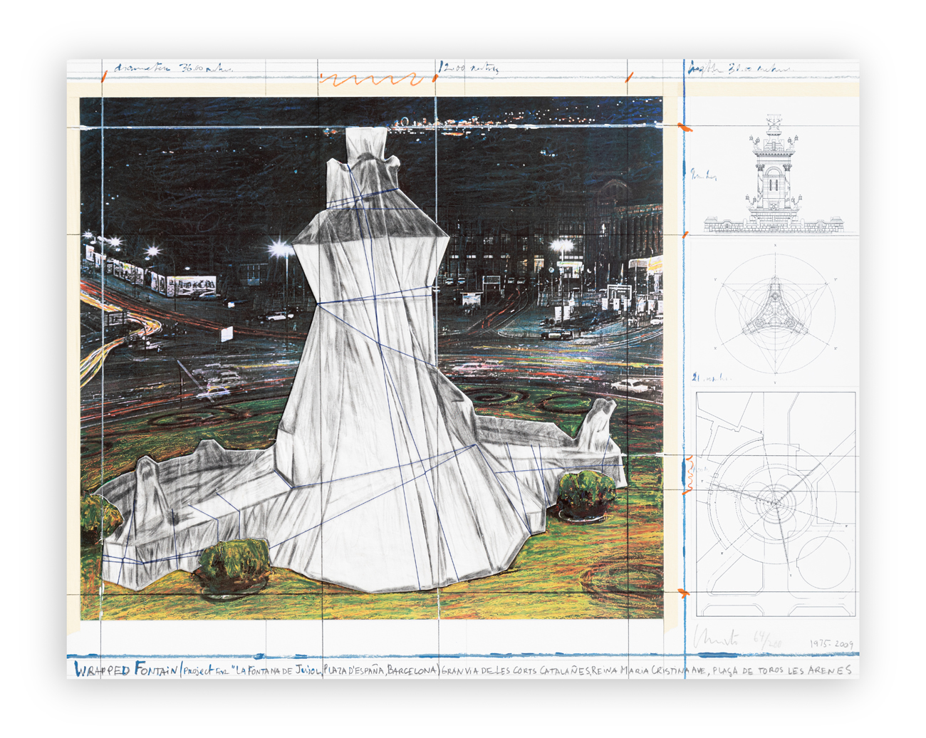 CHRISTO (1935-2020) - Wrapped Fountain, Project for La Fontana de Jujol, Plaza de Espana, Barcelona, 2009
