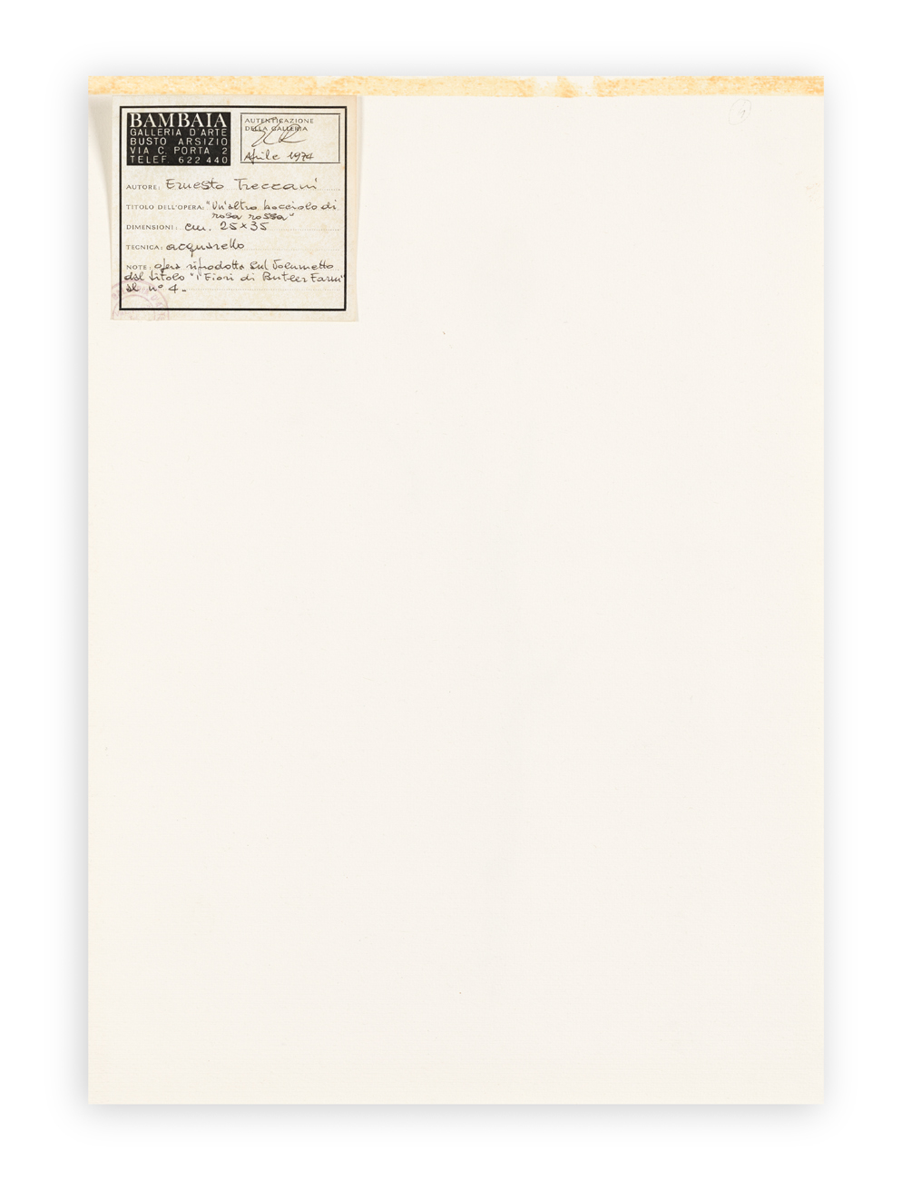 Etichetta e timbro della Galleria Bambaia (VA) al retro