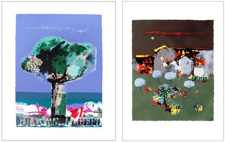 MANLIO BACOSI Perugia 1921 - Perugia 1998 Lotto composto da due opere: Grande albero Serigrafia a colori es.5/100. Firma in b. a d. (70 x 50 foglio – 69,5 x 49,5 ser.) Senza titolo Serigrafia a colori es.2/100. Firma in b. a d. (70 x 50 foglio – 50 x 40 ser.)
